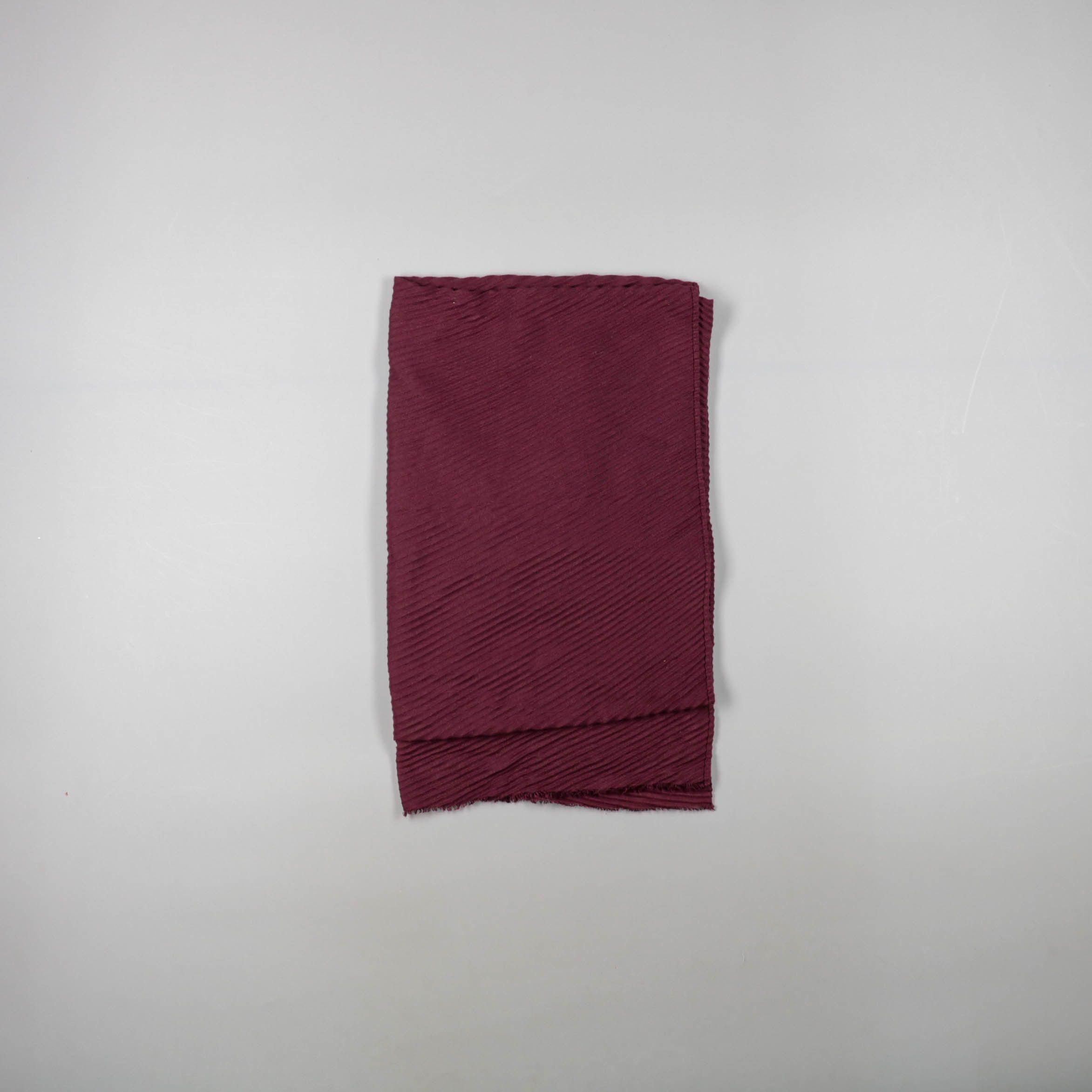 Шарф винного (бордового) цвета из фактурной ткани в рубчик. Подойдёт для повседневных образов и как лёгкий слой в прохладную погоду. Компактно складывается и почти не мнётся в дороге.