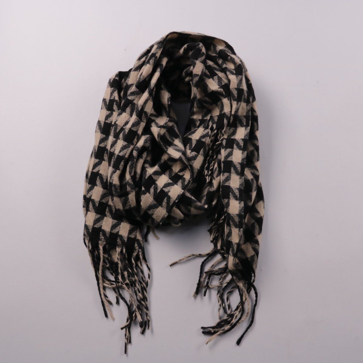 Шарф George с графичным узором и кисточками по краям, размер one size. Подойдёт для прохладной погоды и многослойных образов в городе. Лёгко комбинируется с базовой верхней одеждой и быстро добавляет тепла за счёт мягкой ткани.