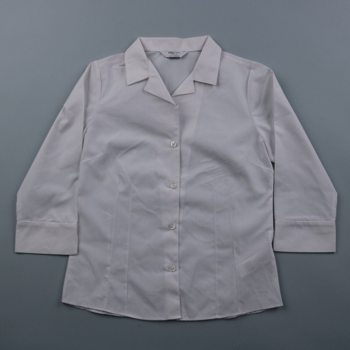 Школьная белая рубашка M&S School с отложным воротником и застёжкой на пуговицы, длинный рукав с манжетами. Подойдёт для школы и торжественных мероприятий как часть формы. Практичное преимущество — ткань easy-care, стирка при 30°C.