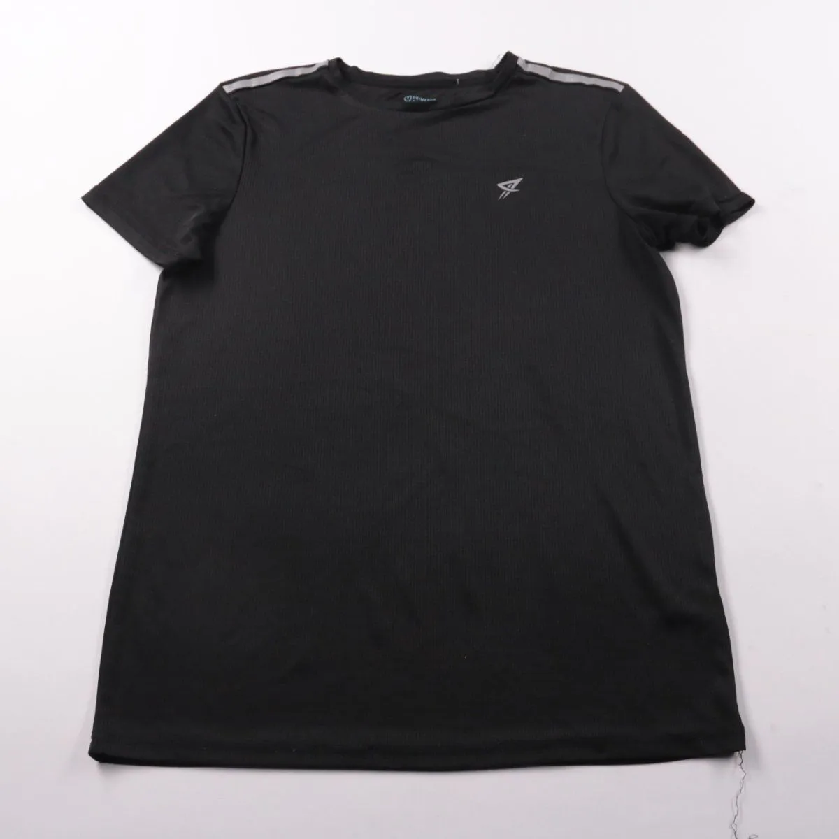Футболка Primark чёрного цвета с коротким рукавом и небольшим логотипом на груди. Подойдёт для спорта, тренировок и повседневной носки в тёплую погоду или как первый слой. Материал лёгкий и быстро сохнет, удобно стирать и носить часто.
