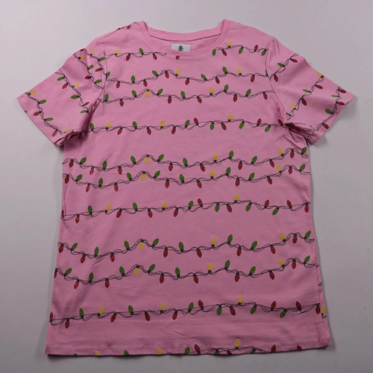 Футболка George розового цвета с принтом в виде гирлянд по всей поверхности. Подойдёт для повседневной носки летом и для занятий в помещении. Хлопковая ткань хорошо дышит и проста в уходе.