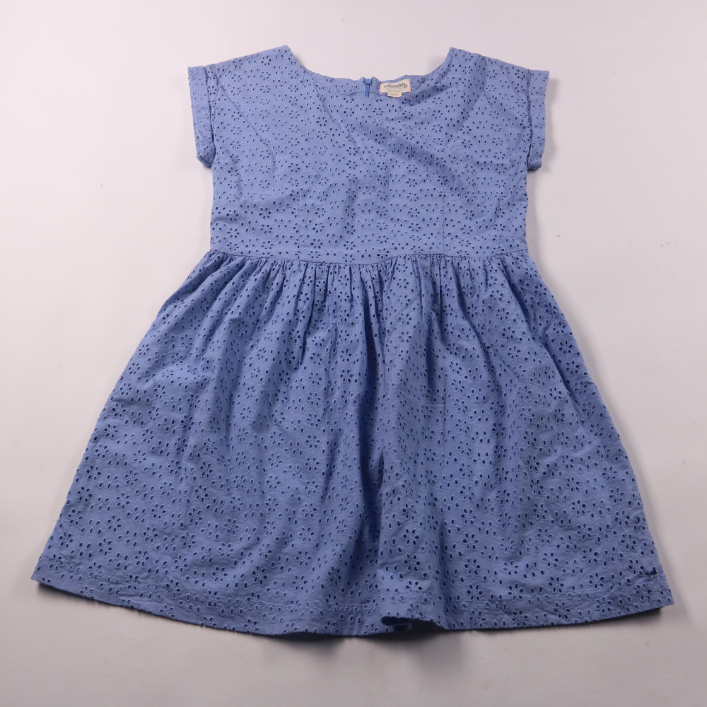 Платье Johnnie b голубого цвета из хлопка с вышивкой ришелье и коротким рукавом. Подойдёт для лета, прогулок и праздников, благодаря лёгкой ткани и свободной юбке. Хлопковая подкладка делает его комфортным для длительной носки.