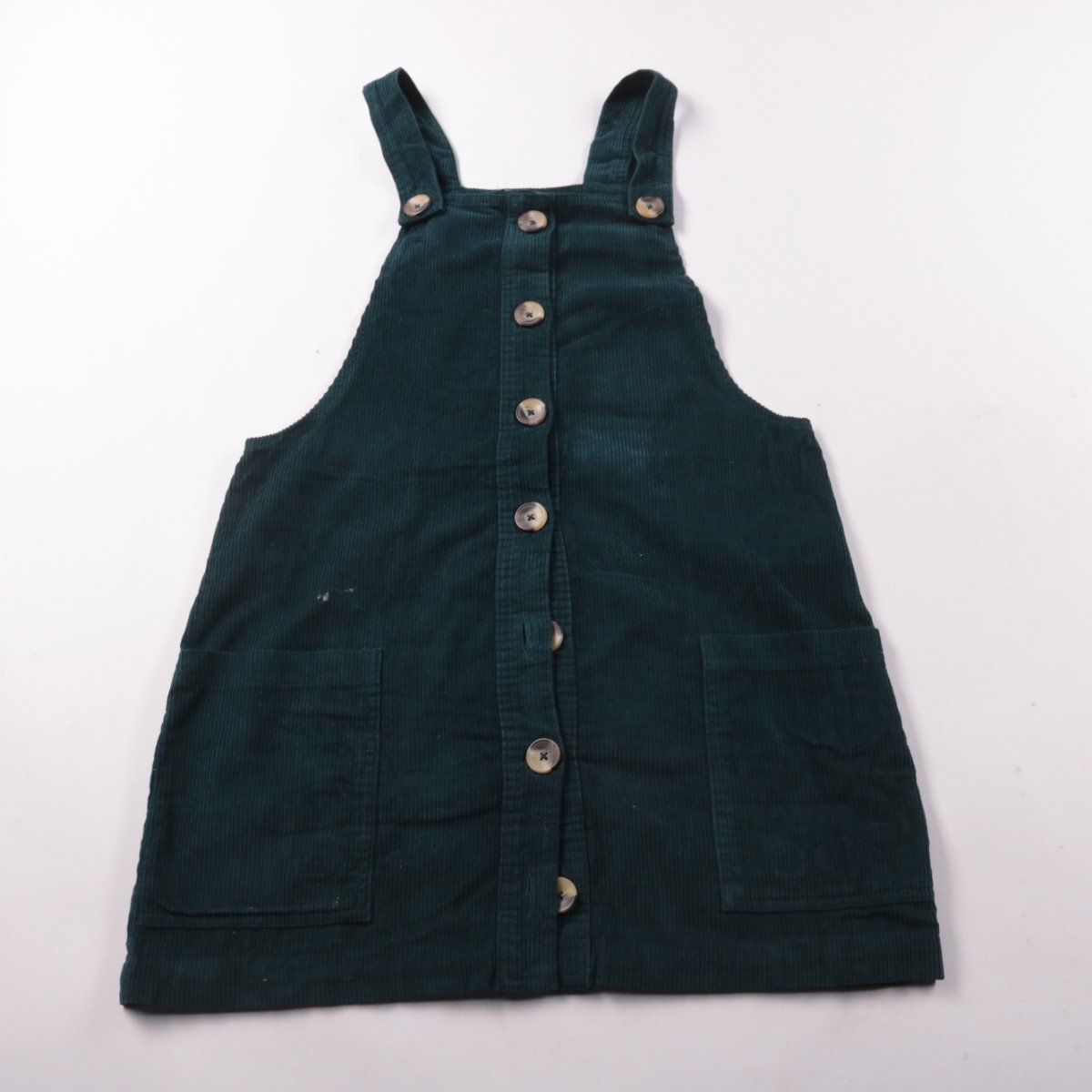 Вельветовый сарафан Papaya тёмно-зелёного цвета на пуговицах, с двумя накладными карманами спереди. Подойдёт для школы и прогулок, удобно носить с водолазкой или футболкой. Плотный хлопок хорошо держит форму и не требует сложного ухода.