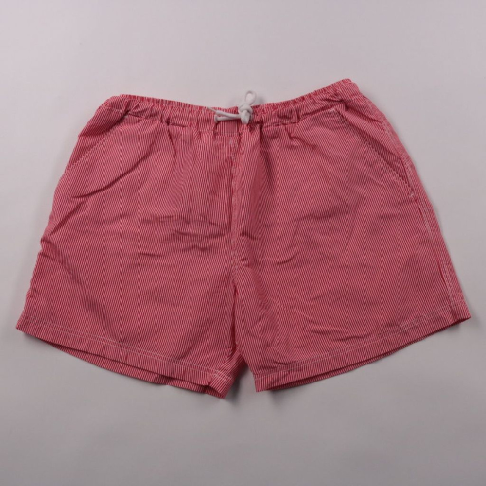 Шорты SzFMB для мальчика, красные в тонкую белую полоску, с эластичным поясом и шнурком. Подойдут для прогулок и отдыха в тёплую погоду. Удобно быстро надевать и регулировать посадку по талии.