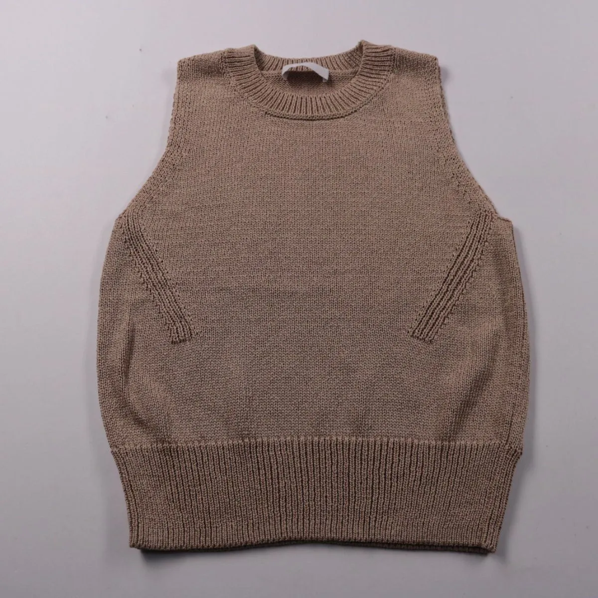 Вязаная жилетка M&S бежевого цвета с круглым воротом и широкой резинкой по низу. Подойдёт для школы и прогулок в прохладную погоду, удобно надевать поверх рубашки или лонгслива. Практична в уходе: машинная стирка при 30°C.