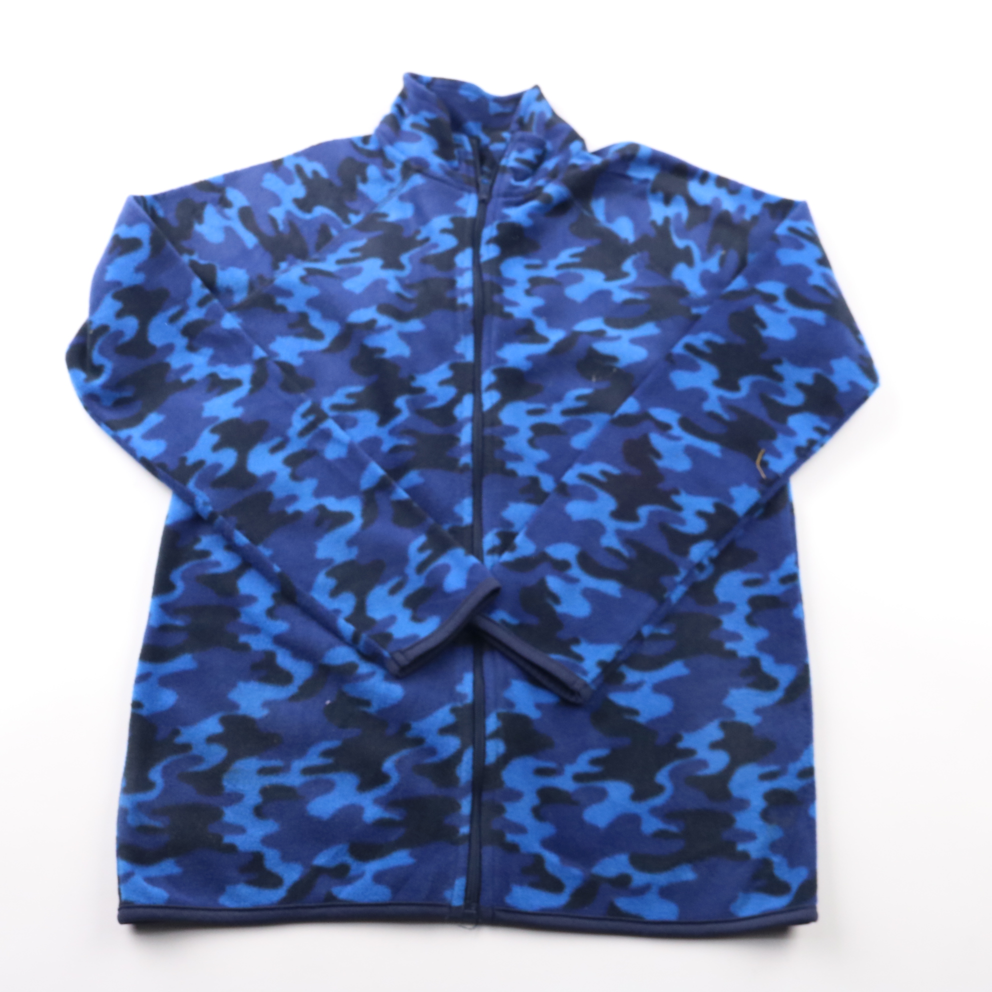 Флисовая толстовка Y.F.K. на молнии с высоким воротником и сине-чёрным камуфляжным принтом. Подойдёт для школы, прогулок и как второй слой под куртку в прохладную погоду. Мягкий флис быстро сохнет и не сковывает движения.