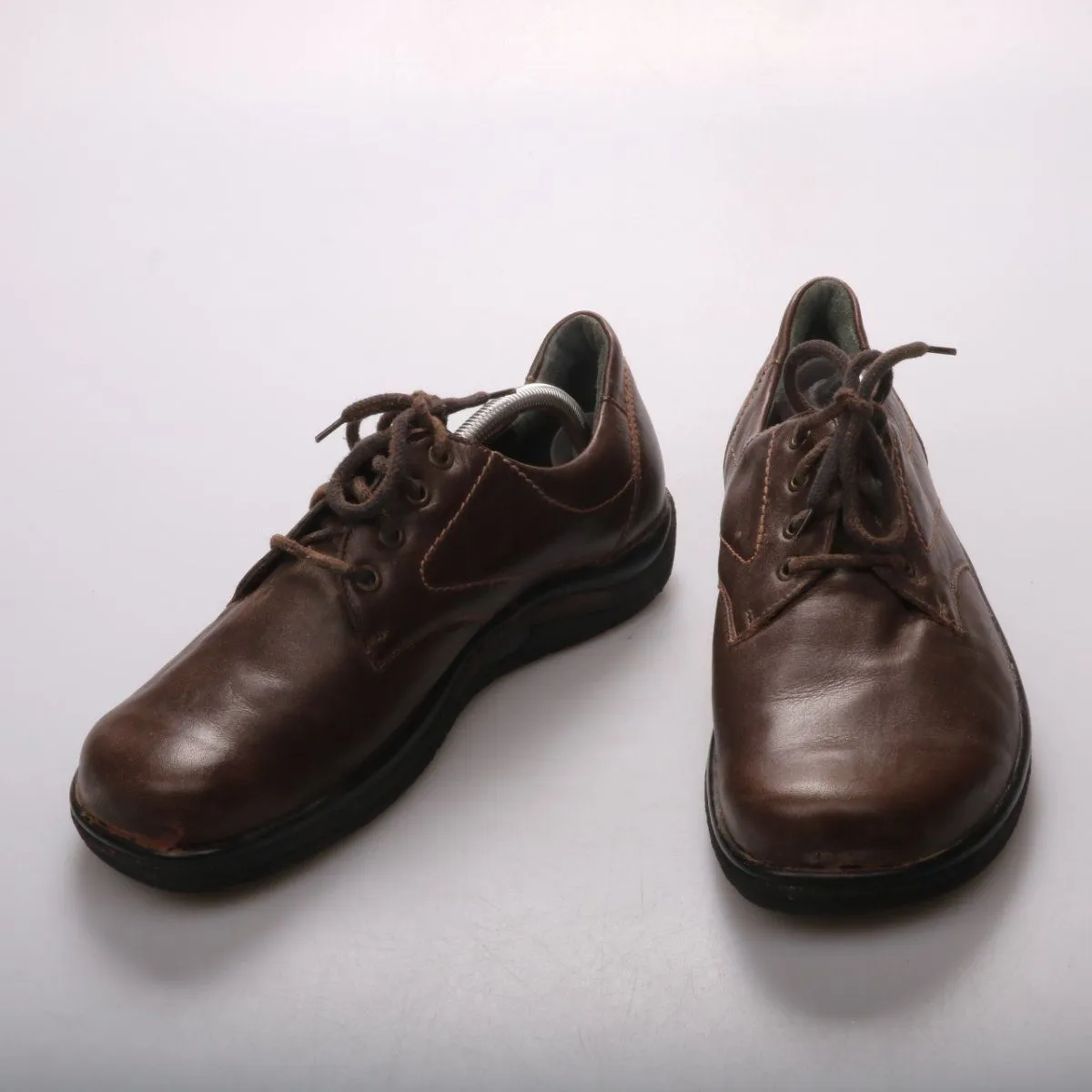 Мужские кожаные туфли Jomos Aircomfort на шнуровке, коричневого цвета. Подойдут для повседневной носки и офиса в демисезон. Практичная толстая подошва хорошо амортизирует и устойчиво держит на дороге.