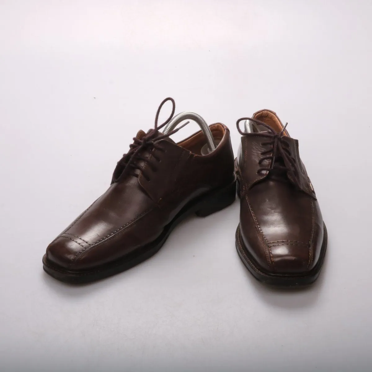 Мужские кожаные туфли Bugatti с шнуровкой и аккуратным мысом, в коричневом цвете. Подойдут для офиса, деловых встреч и повседневных образов в стиле smart casual. Практичная резиновая подошва даёт хорошее сцепление и дольше служит в городе.