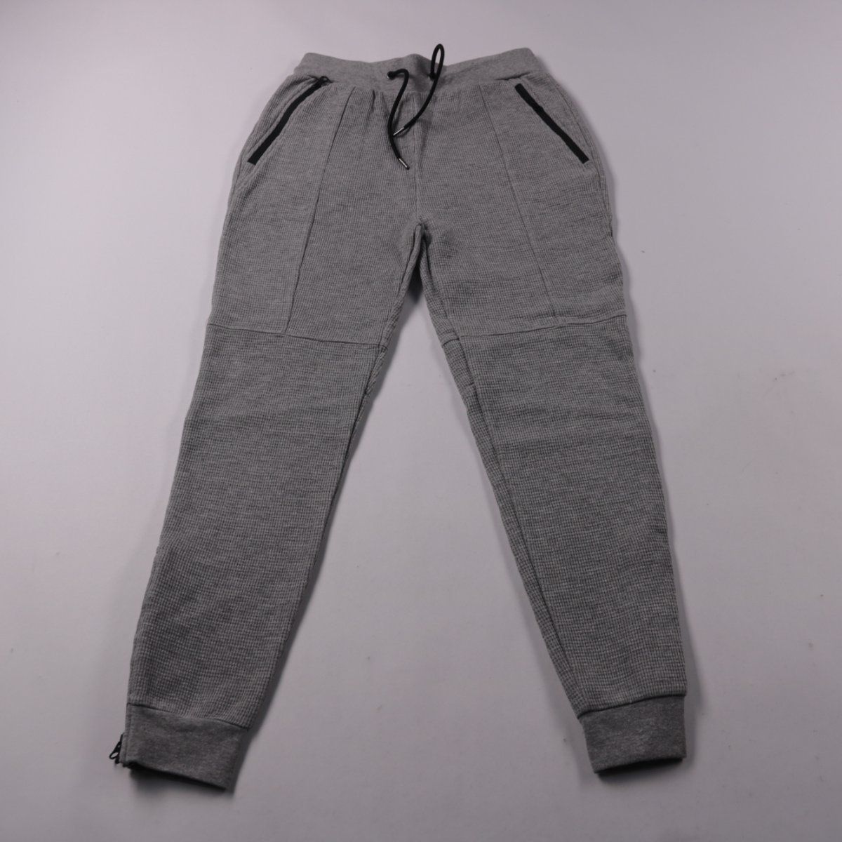 Мужские спортивные брюки Primark серого цвета с поясом на шнурке и манжетами по низу. Подойдут для повседневной носки и прогулок в прохладную погоду. Практичные карманы на молниях помогают надёжно держать мелочи.