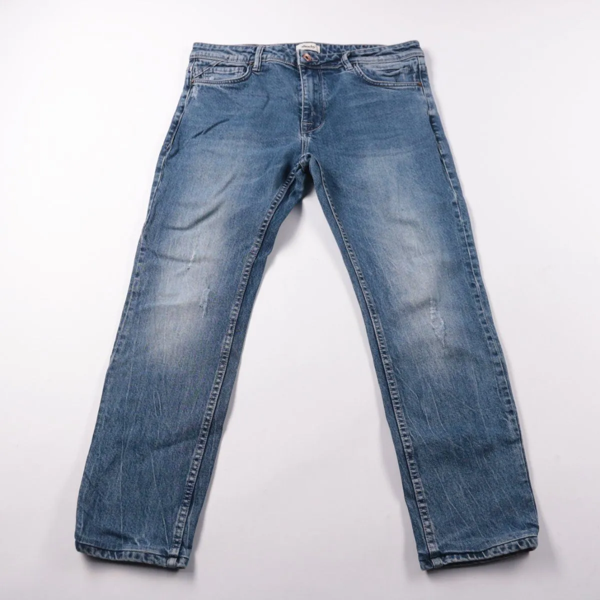 Мужские джинсы Shoeby из синего денима с эффектом лёгкого выбеливания. Подойдут для повседневной носки и casual-образов в любое время года. Практичный плюс — ткань с эластаном даёт более комфортную посадку и свободу движений.