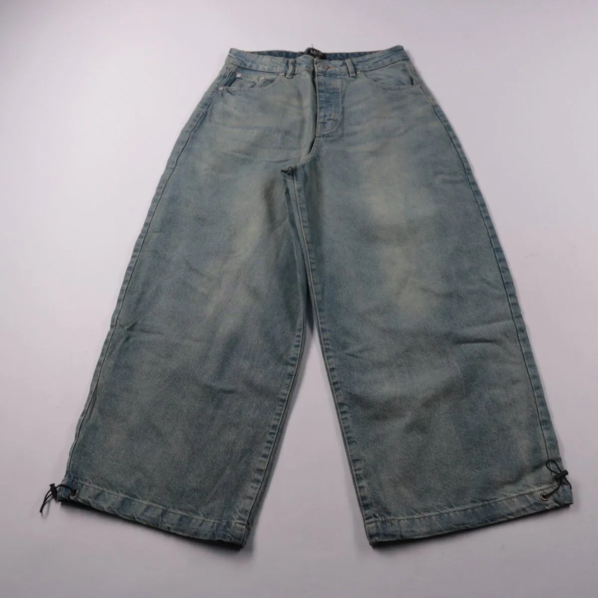 Мужские джинсы BoohooMAN из светло-синего денима с эффектом выварки и широкими штанинами. Подойдут для повседневных образов в стиле casual и streetwear. Плотный хлопковый материал хорошо держит форму и носится долго.