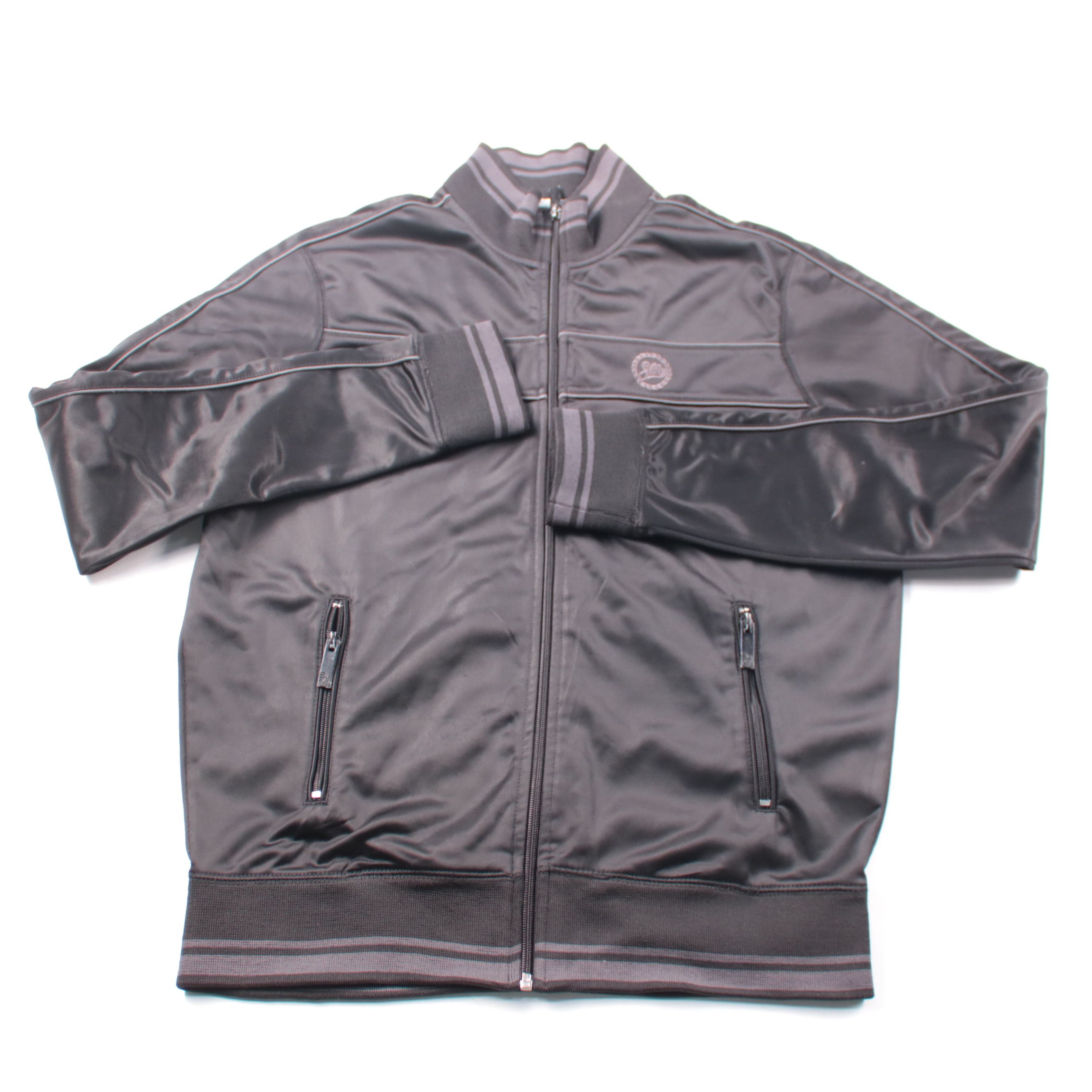 Мужская толстовка Sia Mia на молнии из гладкого синтетического материала, в тёмно-сером/чёрном цвете с воротником-стойкой и карманами на молнии. Подойдёт для повседневной носки и спорта в прохладную погоду. Практичный плюс — быстро сохнет и удобна в до...