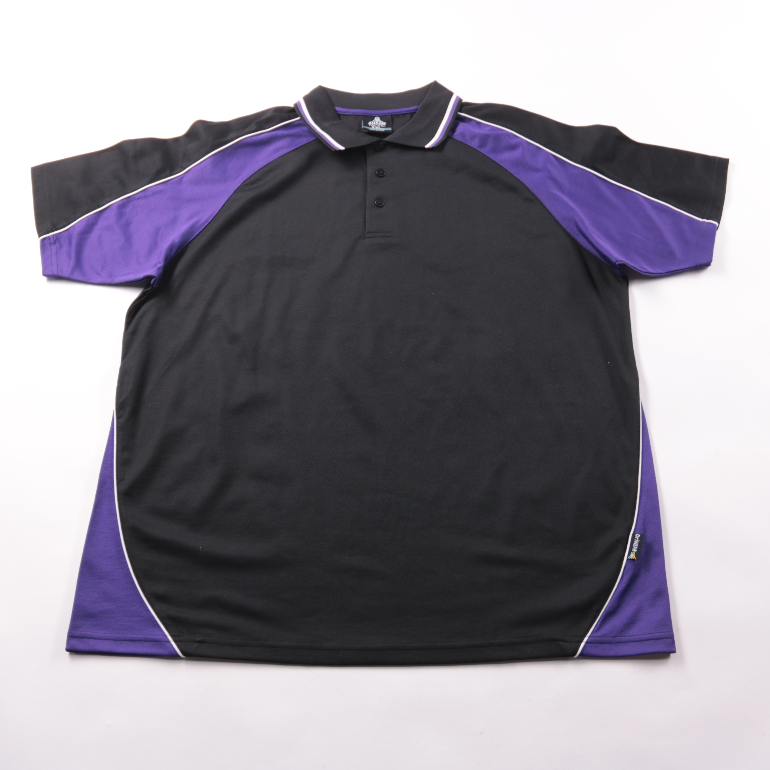 Мужское поло Aussie Pacific в спортивном стиле, чёрное с фиолетовыми вставками и белым кантом. Подойдёт для повседневной носки, работы или активного отдыха в тёплое время и в помещении. Материал практичный: легко стирается и быстро сохнет.