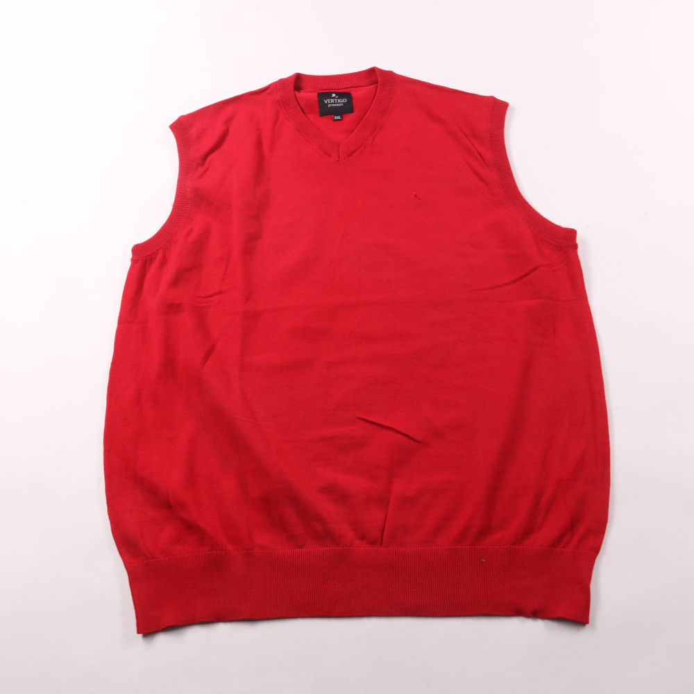 Мужской трикотажный жилет Vertigo Premium красного цвета с V-образным вырезом. Подойдёт для офиса и повседневных образов поверх рубашки или лонгслива в прохладную погоду. Смесь хлопка с нейлоном меньше мнётся и лучше держит форму.