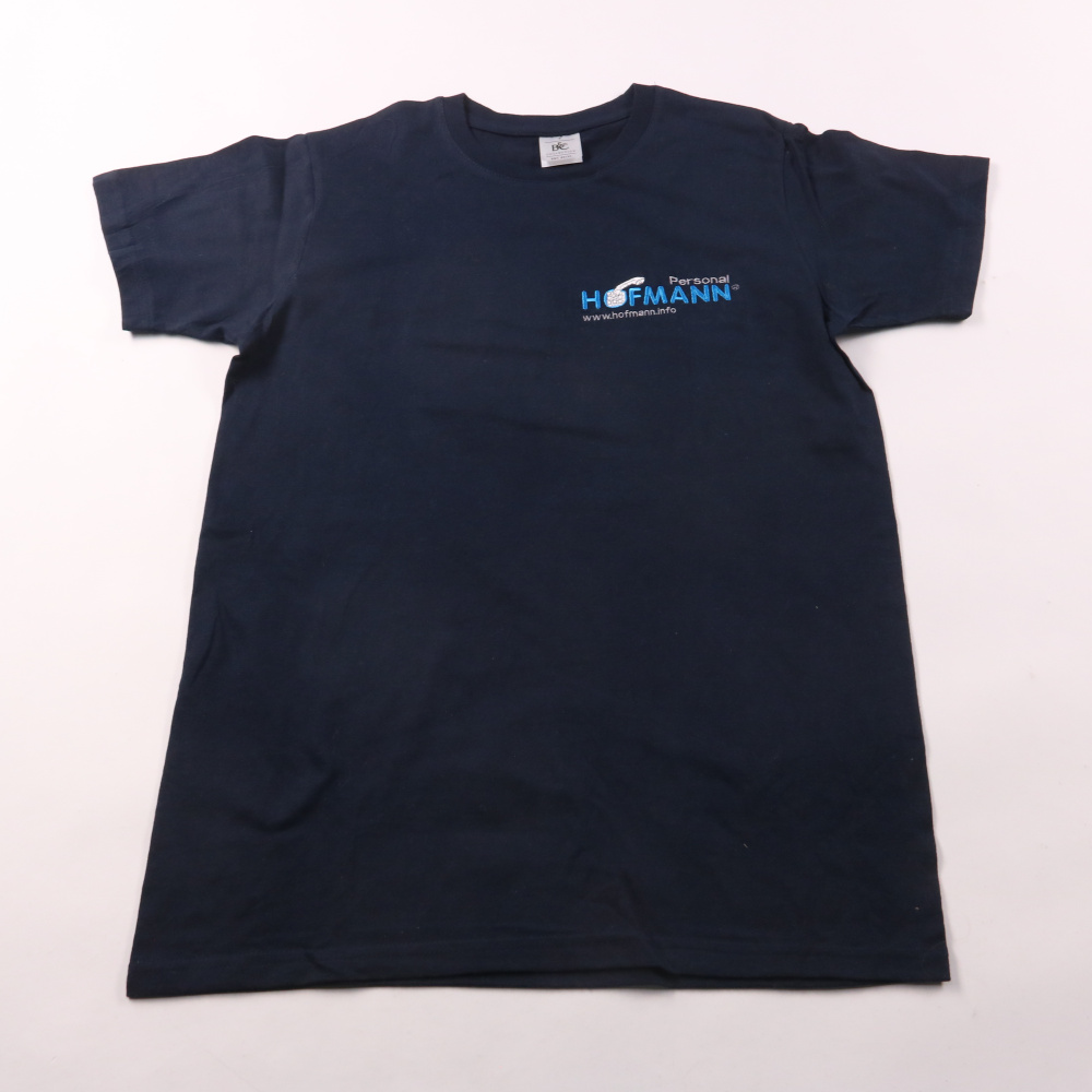 Футболка B&C тёмно-синего цвета из хлопка, с небольшим логотипом на груди. Подойдёт для повседневной носки, дома или как рабочая/промо-одежда. Хлопковый трикотаж дышит и легко стирается.