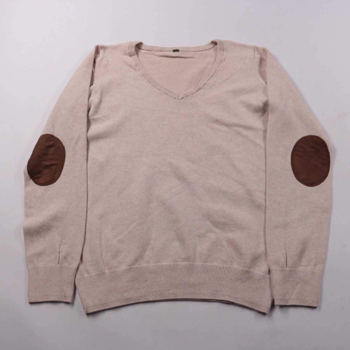 Трикотажный джемпер с V-образным вырезом и контрастными налокотниками. Подойдёт для повседневной носки в офисе или в городе в прохладную погоду. Хлопковая основа приятна к телу и хорошо дышит.
