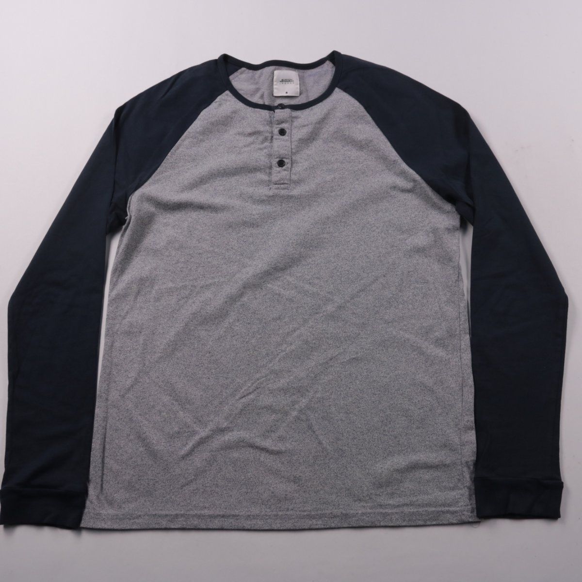 Мужская футболка Burton Menswear London с длинным рукавом реглан и планкой на пуговицах (henley). Подойдёт для повседневной носки и как базовый слой в прохладную погоду. Практичный двухцветный дизайн (серый меланж/чёрный) легко сочетать с джинсами и чиносами.