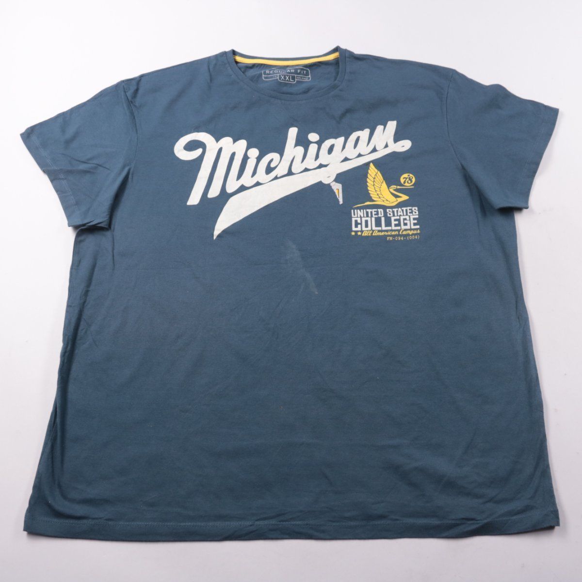 Мужская футболка Cedarwood State размера XXL, regular fit, с принтом Michigan/United States College. Подойдёт для повседневной носки летом и в тёплых помещениях. Хлопковая ткань хорошо дышит и комфортна в носке.