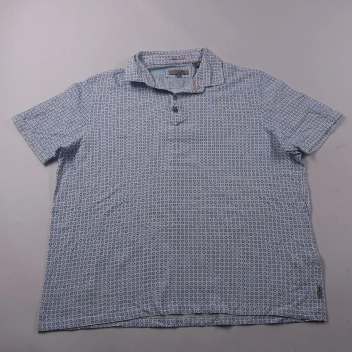 Мужское поло Ted Baker из хлопка с мелким голубым принтом. Подойдёт для повседневной носки летом и в тёплую погоду. Натуральная ткань хорошо дышит и комфортна в носке.