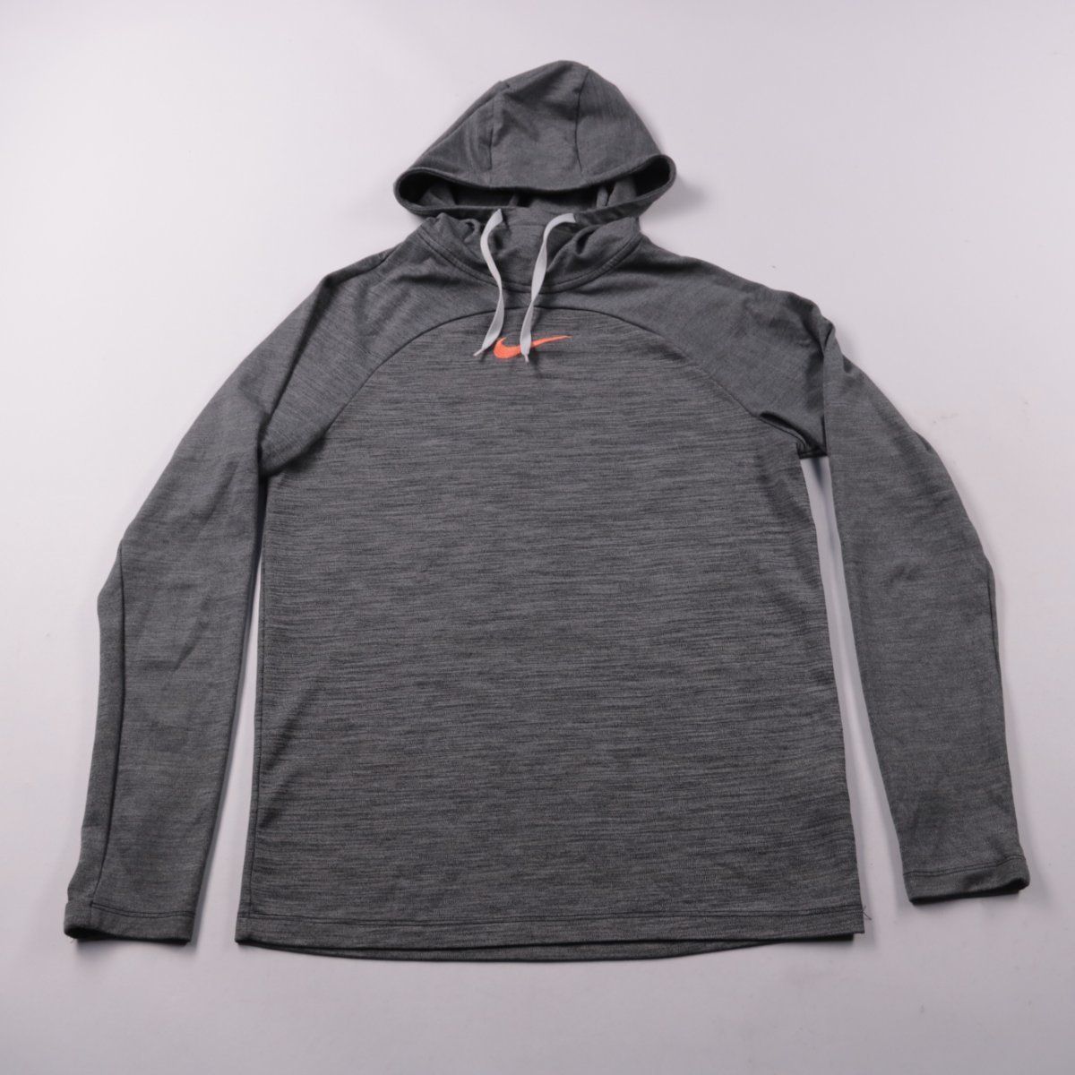Мужское худи Nike Dri-FIT серого меланжа с капюшоном и длинным рукавом, выполнено из полиэстера. Подойдёт для тренировок и повседневной носки в прохладную погоду. Быстро сохнет и удобно в уходе.
