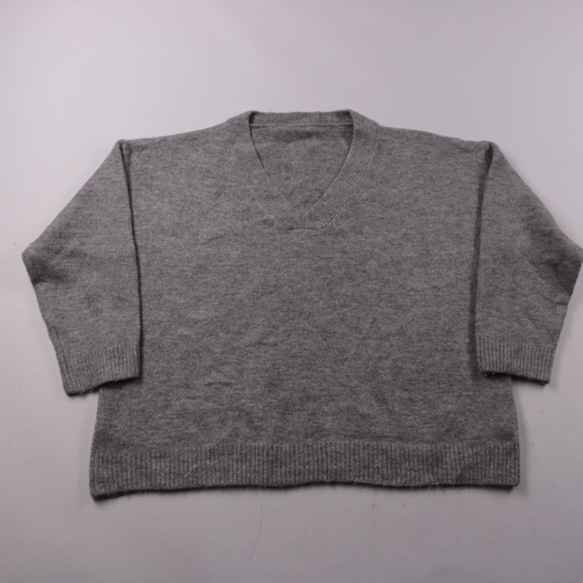 Серый мужской джемпер с V-образным вырезом и длинным рукавом. Подойдёт для повседневной носки в прохладную погоду, хорошо сочетается с джинсами и брюками. Практичный плюс — мягкий трикотаж и удобная посадка.
