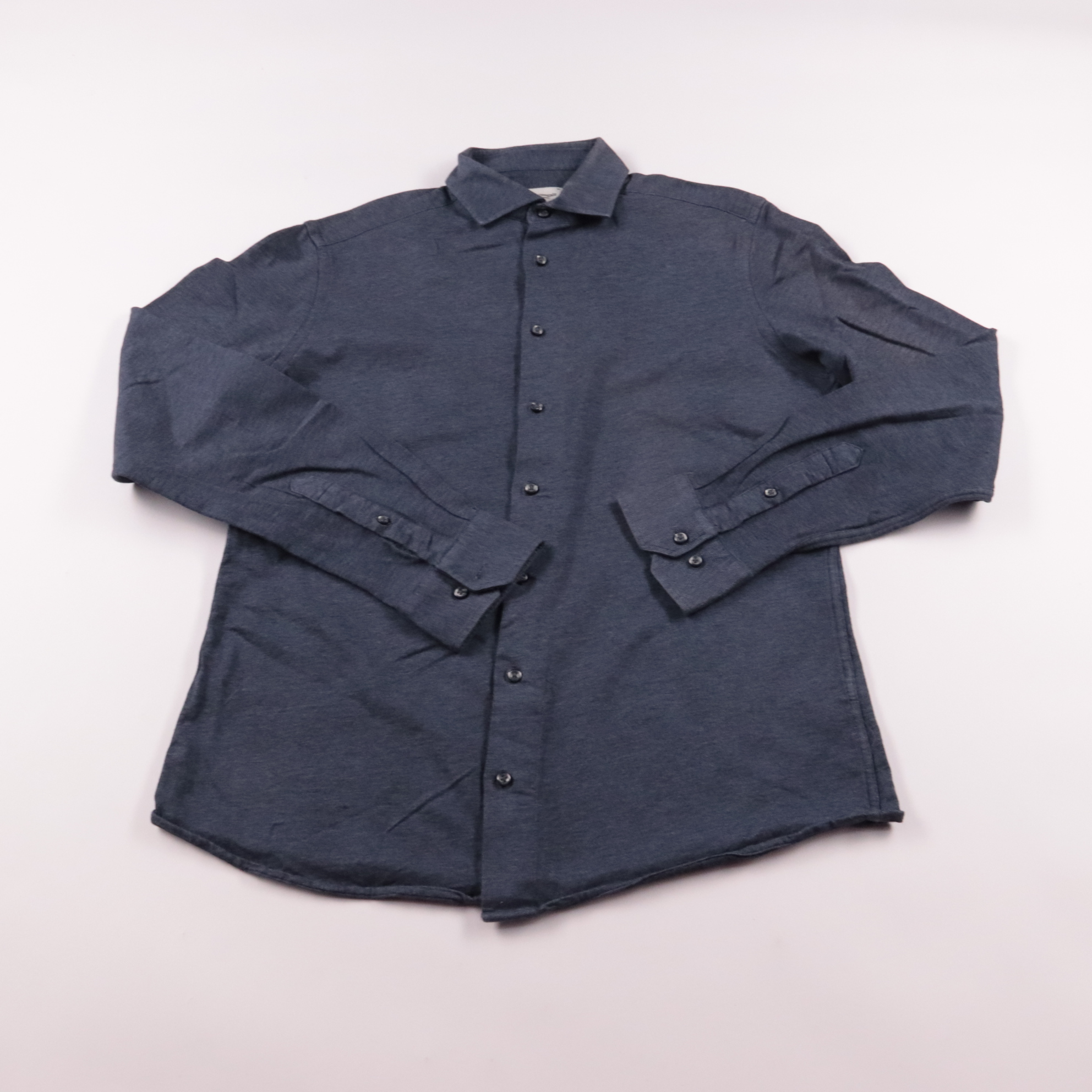 Мужская рубашка Bruun & Stengade slim fit из плотного хлопка тёмно-синего цвета. Подойдёт для офиса и повседневных образов с джинсами или брюками. Материал приятный к телу и хорошо держит форму.