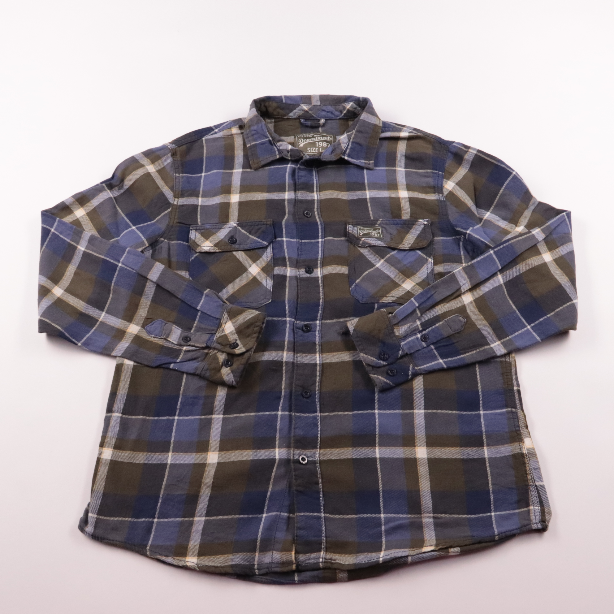 Мужская рубашка Mywear man в крупную клетку, размер L, с двумя нагрудными карманами на клапанах. Подойдёт для повседневной носки в прохладную погоду и для многослойных образов поверх футболки. Хлопковая ткань хорошо дышит и комфортна в носке.