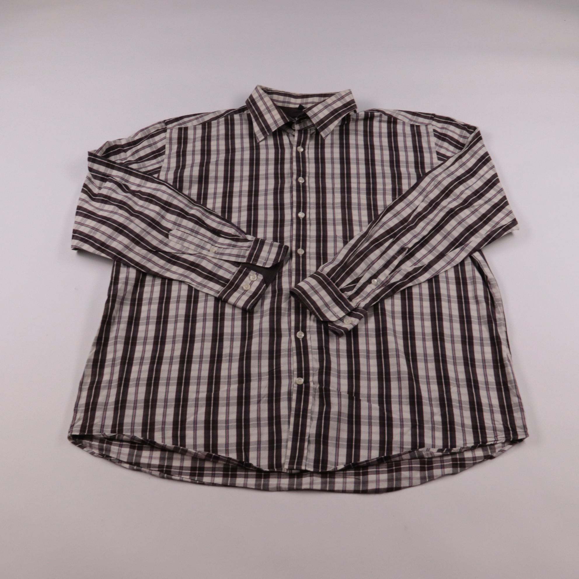 Мужская рубашка Westbury в серо-бордовой клетку, с длинным рукавом и застёжкой на пуговицы. Подойдёт для офиса или повседневных образов с джинсами и брюками. Хлопок приятный к телу и хорошо дышит.
