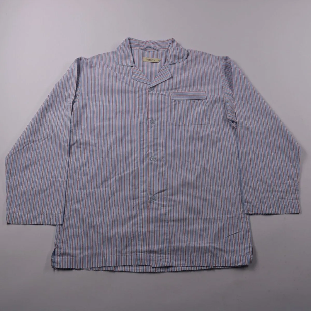 Мужская пижамная рубашка Christian Berg в вертикальную полоску (голубой/красный/белый), на пуговицах, с отложным воротником и нагрудным карманом. Подойдёт для сна и домашнего отдыха в любое время года. Практичная ткань и свободный крой обеспечивают комфорт и не сковывают движения.