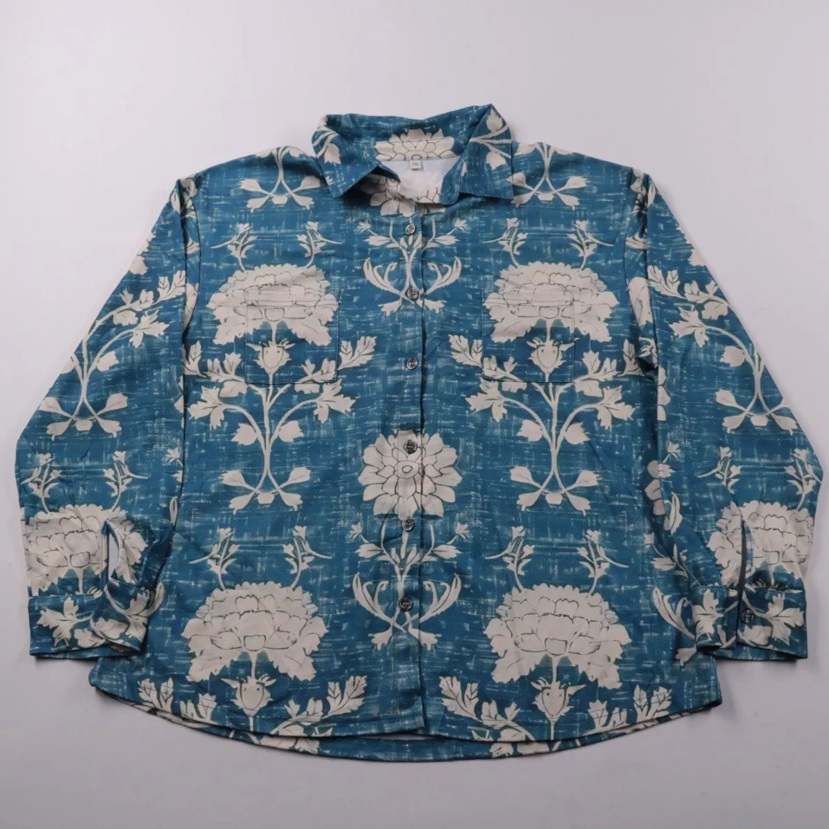 Мужская рубашка с длинным рукавом и ярким цветочным принтом в голубом цвете. Подойдёт для повседневных образов и отдыха, хорошо смотрится как навыпуск, так и под лёгкую куртку. Ткань с добавлением полиэстера легче в уходе и меньше мнётся.