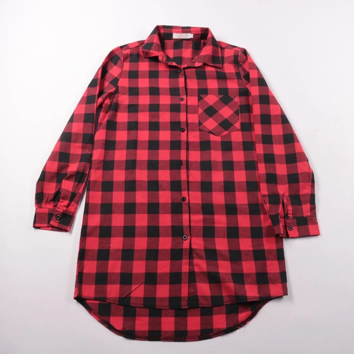 Рубашка Effeny в красно‑чёрную клетку, на пуговицах, с нагрудным карманом и удлинённой спинкой. Подойдёт для повседневной носки в межсезонье и в многослойных образах. Натуральный хлопок хорошо дышит и комфортен в течение дня.