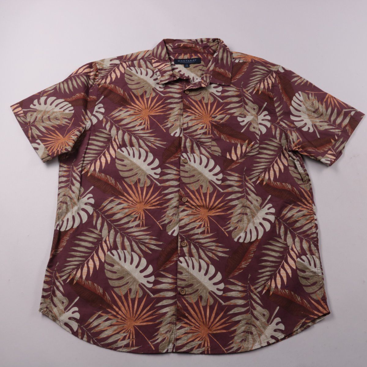 Мужская рубашка Mantaray с коротким рукавом и тропическим принтом на пуговицах. Подойдёт для лета, отпуска и повседневных образов. Хлопок хорошо пропускает воздух и комфортен в жару.