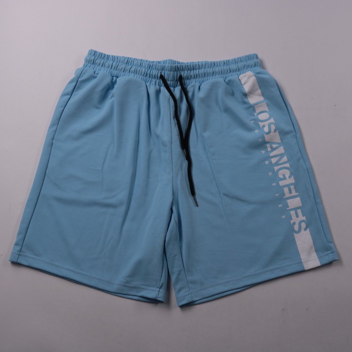 Мужские спортивные шорты Manfinity голубого цвета с эластичным поясом на шнурке и принтом Los Angeles. Подойдут для тренировок, прогулок и отдыха в тёплую погоду. Лёгкая синтетическая ткань быстро сохнет и проста в уходе.