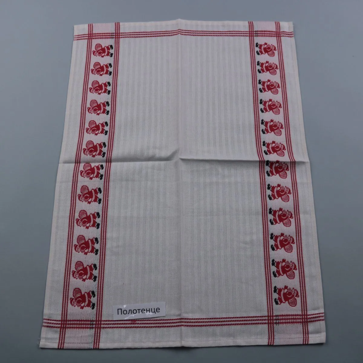 Полотенце Franken белого цвета с красным орнаментом по краям, подойдёт для кухни или ванной. Удобно для ежедневного использования и хорошо впишется в интерьер за счёт классического рисунка. Ткань хлопковая, быстро впитывает влагу и легко стирается.