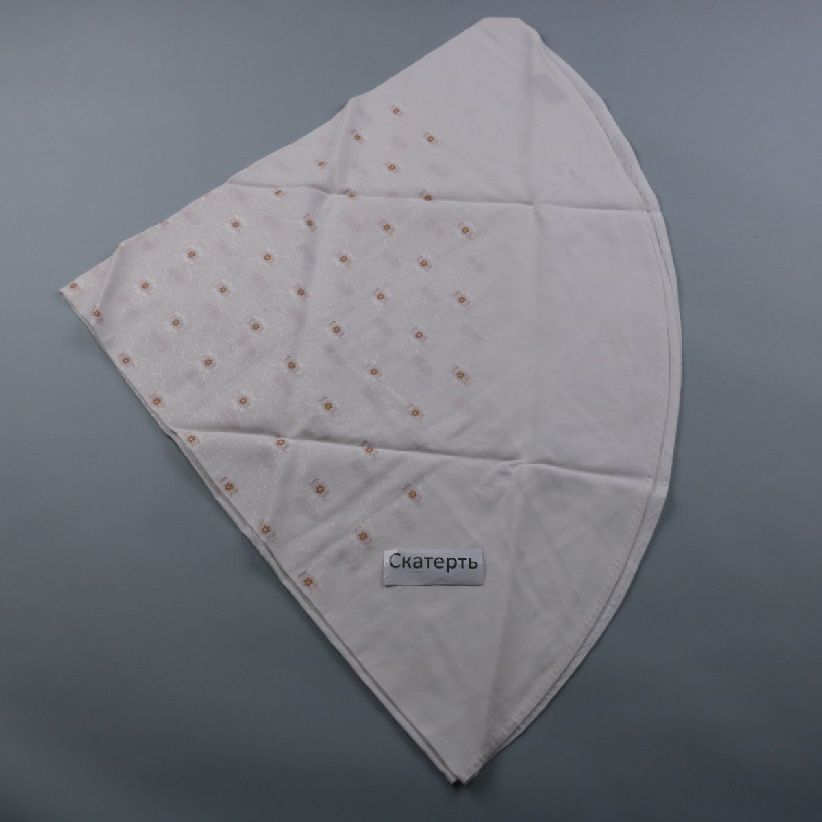 Скатерть Proflax белого цвета с мелким узором, аккуратно обработанный край. Подойдёт для повседневной сервировки и небольших семейных праздников. Легко сочетается с любой посудой и текстилем, не перегружает интерьер.