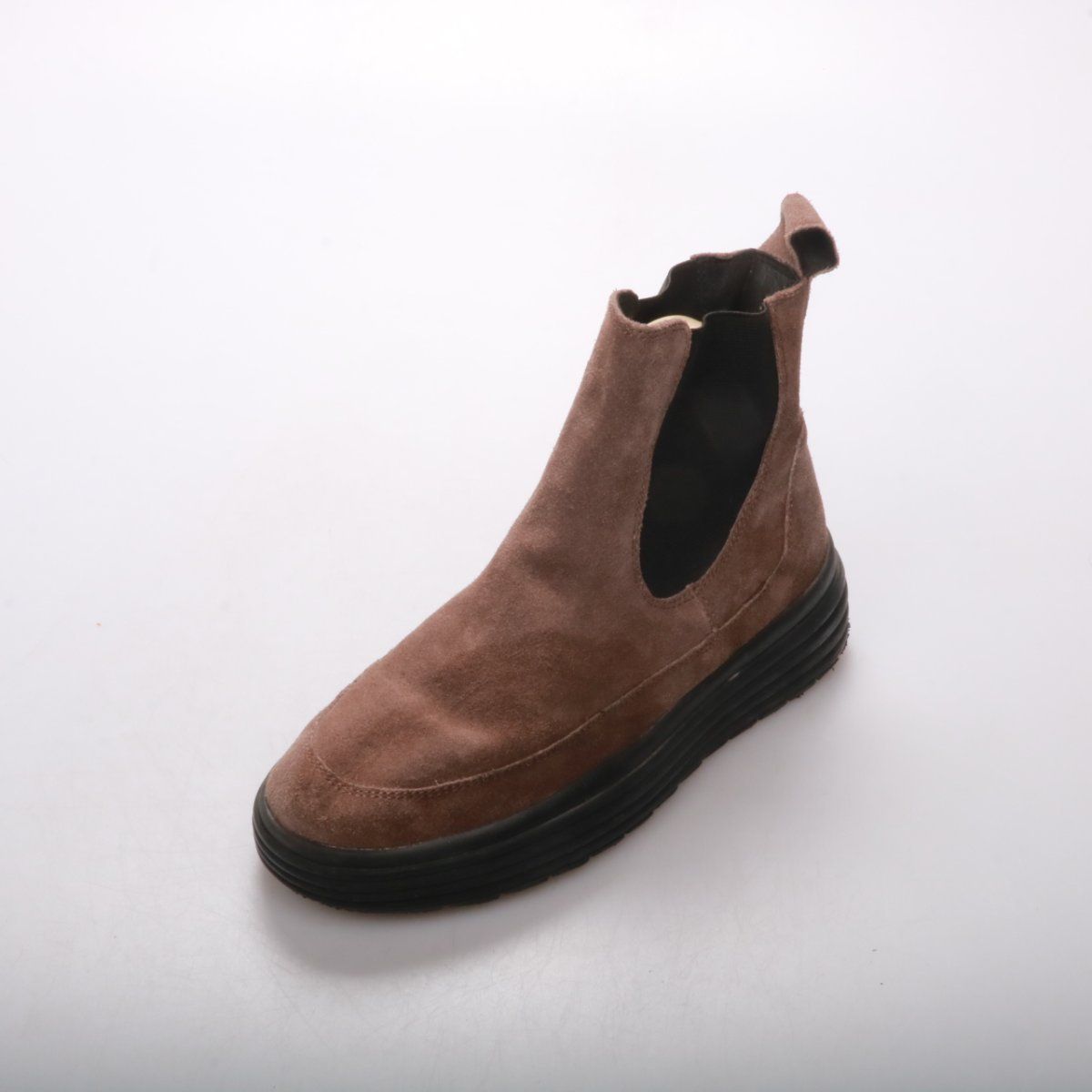 Женские замшевые ботинки Geox в коричневом цвете с эластичными вставками (челси) и утолщённой чёрной подошвой. Подойдут для повседневной носки в межсезонье и в городе. Практичный плюс — удобная устойчивая подошва для длительных прогулок.