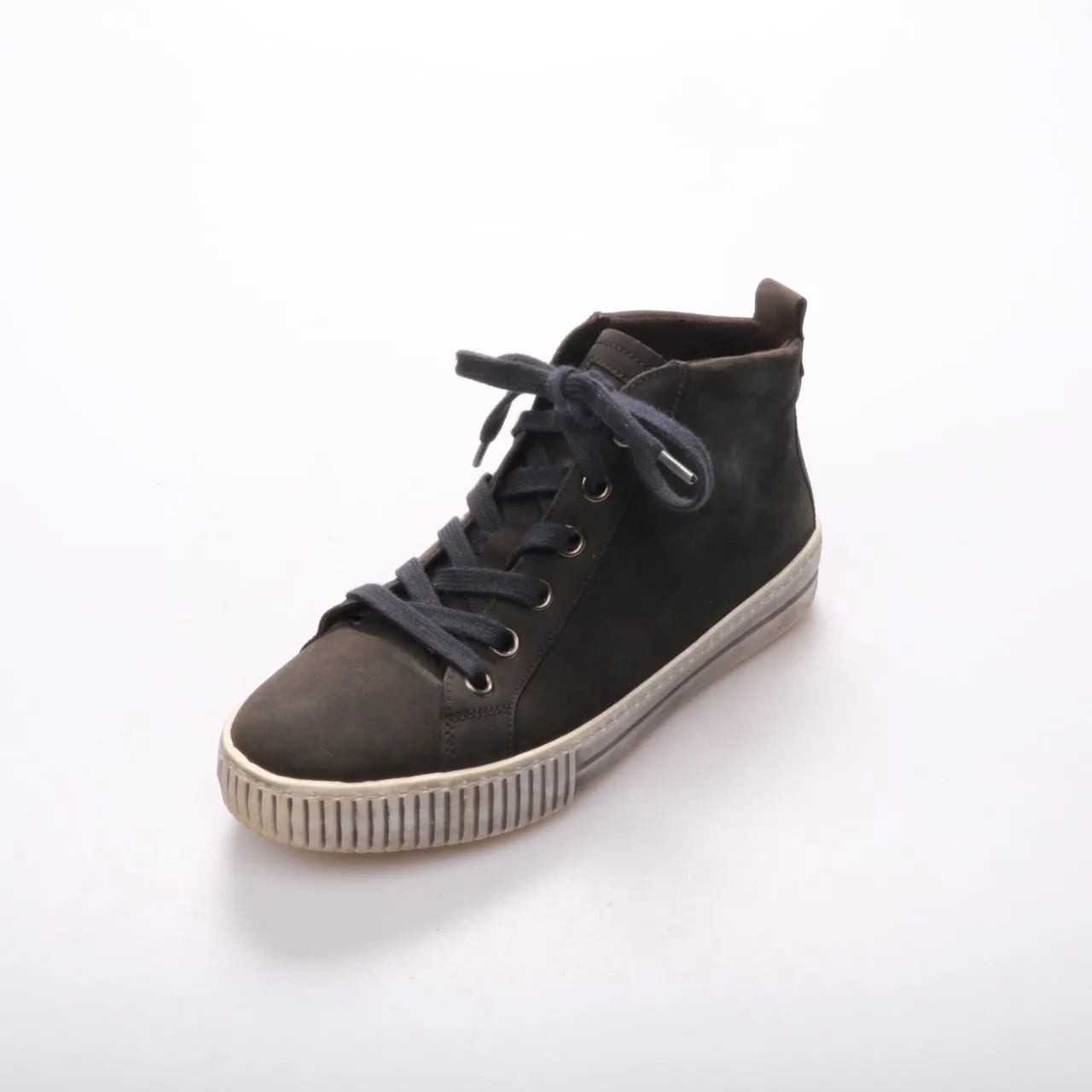 Высокие кеды Gabor из натурального нубука в чёрном цвете на светлой резиновой подошве. Подойдут для города и прогулок в демисезон, хорошо сочетаются с джинсами и повседневными образами. Рифлёная подошва даёт более уверенное сцепление и легко чистится.