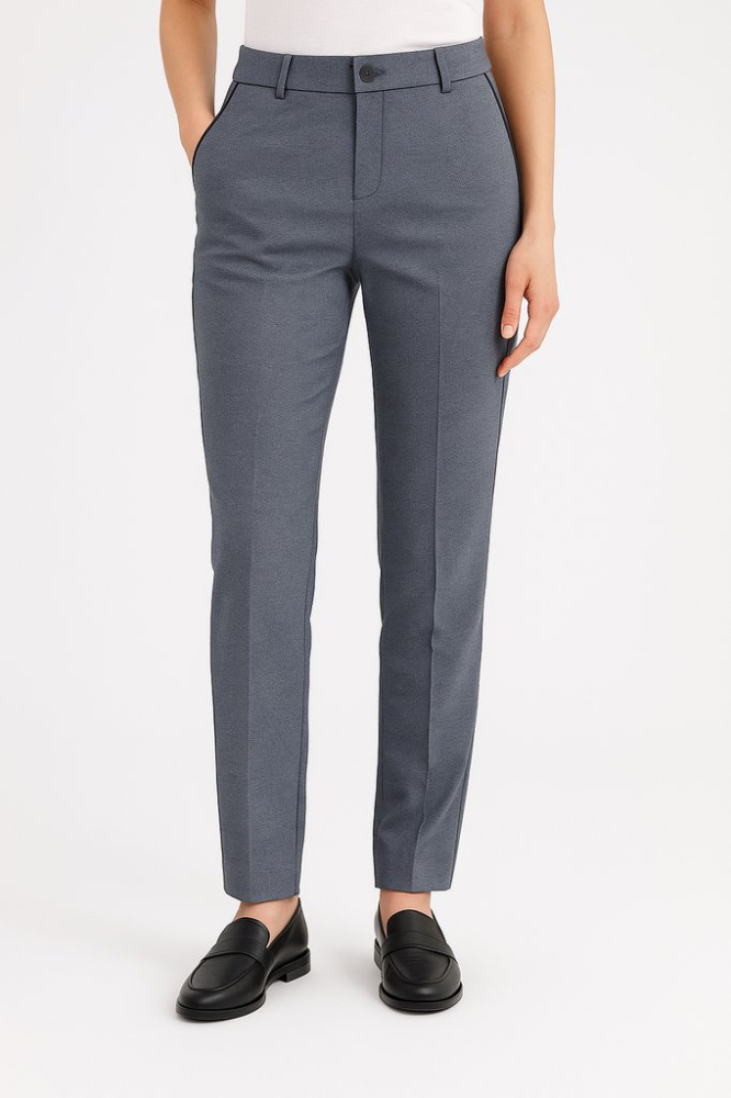 Женские брюки Jaeger прямого кроя в серо-синем оттенке, с застёжкой на пуговицу и шлёвками под ремень. Подойдут для офиса и повседневных образов с рубашкой или трикотажем. Плотная костюмная ткань хорошо держит форму и аккуратно выглядит в течение дня.