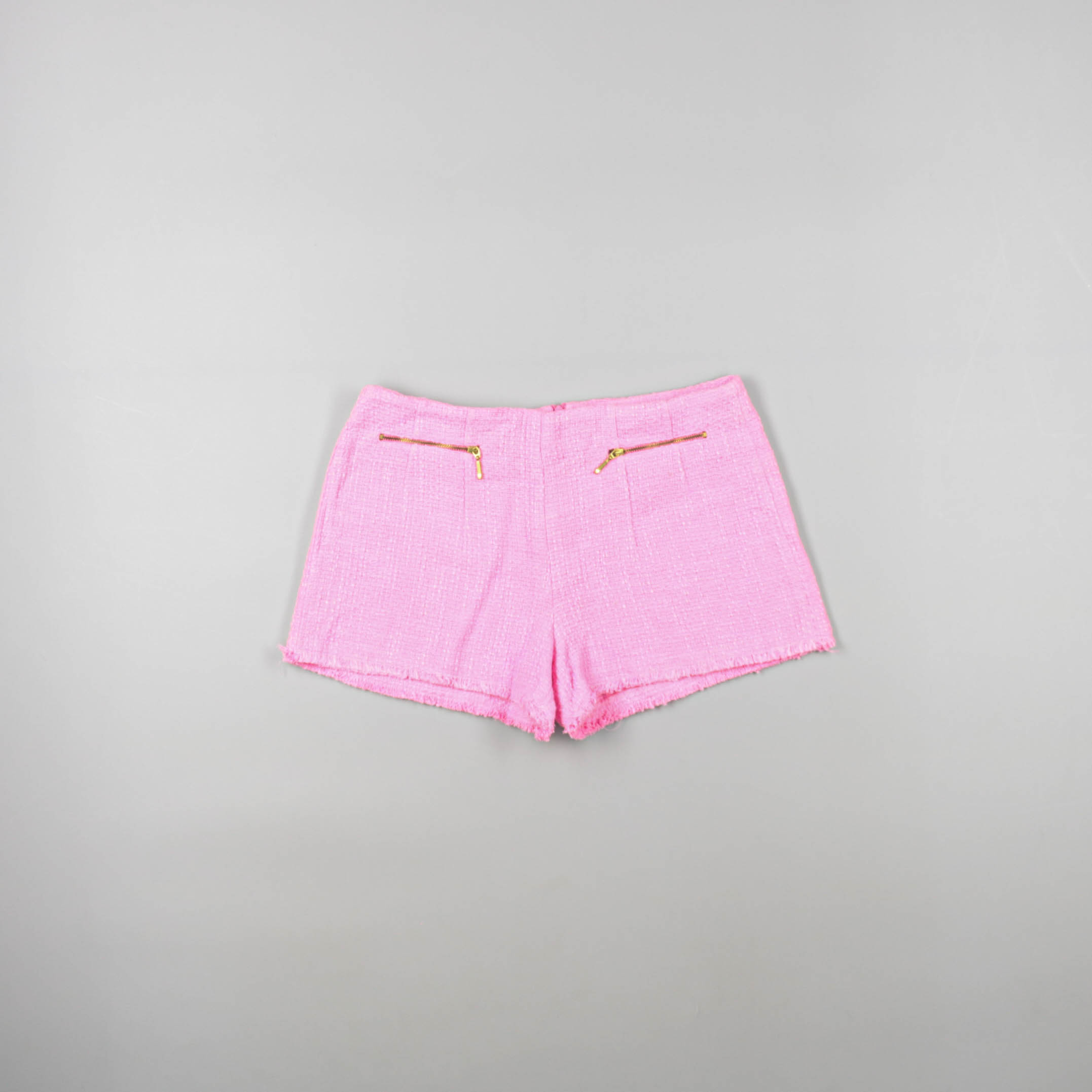 Женские шорты из фактурной ткани в розовом цвете, с декоративными молниями спереди и аккуратной посадкой на талии. Подойдут для летних прогулок и отпускных образов с топами, рубашками и босоножками. Практичный плюс — плотный материал держит форму и выг...