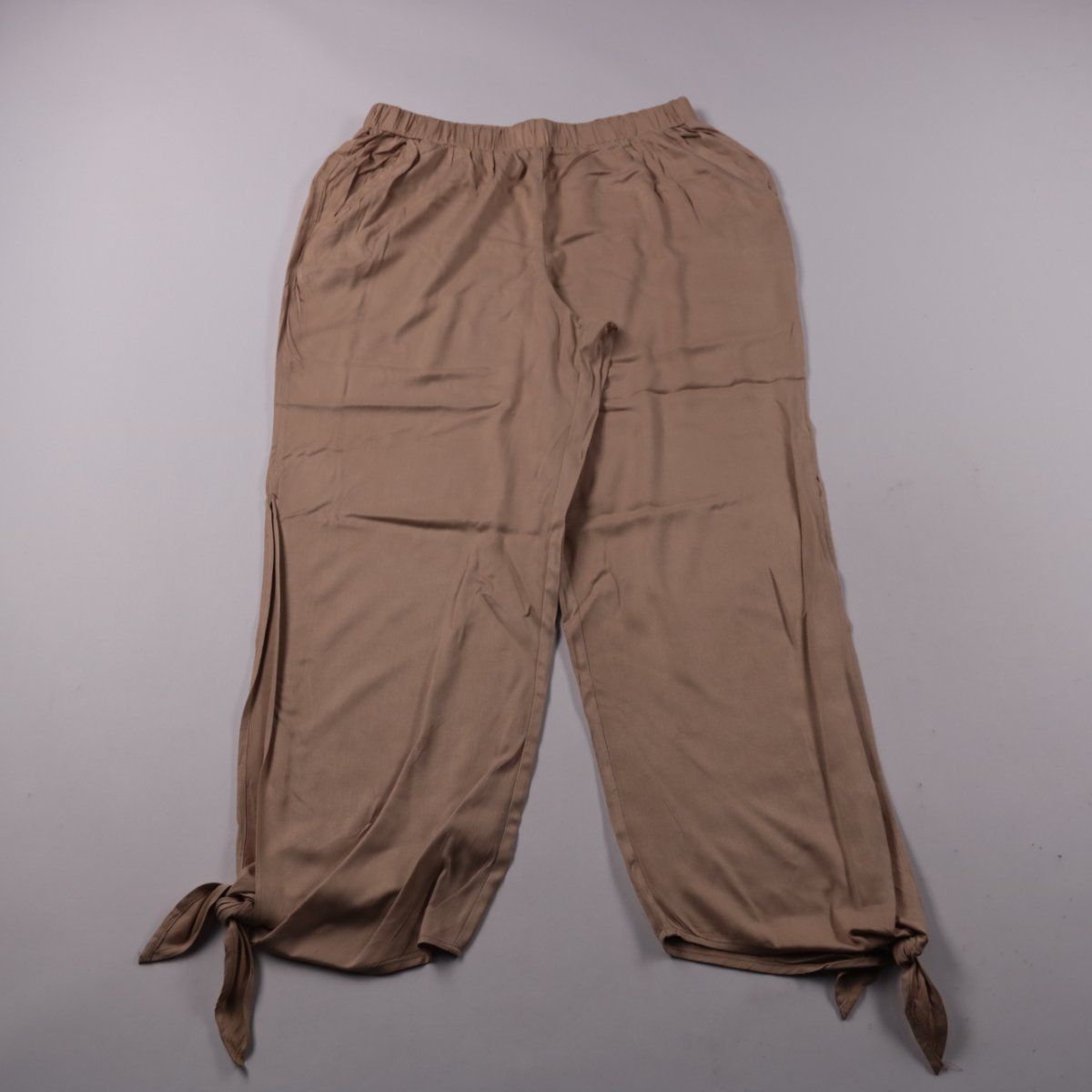 Женские брюки Emery Rose из 100% вискозы, лёгкие и мягкие, с эластичным поясом. Подойдут для прогулок и повседневных летних образов; низ штанин регулируется завязками. Практичны тем, что не сковывают движения и быстро сохнут после стирки.