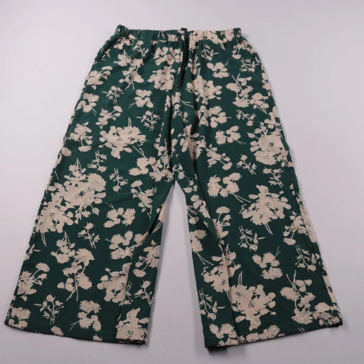 Женские брюки SHEIN с цветочным принтом на тёмно-зелёном фоне и эластичным поясом. Подойдут для летних прогулок и отдыха, хорошо сочетаются с однотонными топами и футболками. Плюс модели — свободный крой не сковывает движения.
