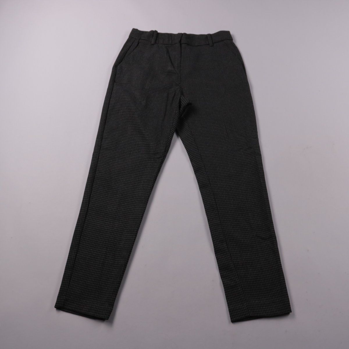 Женские брюки Reserved тёмно-серого цвета в мелкую клетку, классического кроя со шлёвками и карманами. Подойдут для офиса, учёбы и повседневных образов с рубашкой или свитером. Практичный плюс — ткань из полиэстера меньше мнётся и проста в уходе.