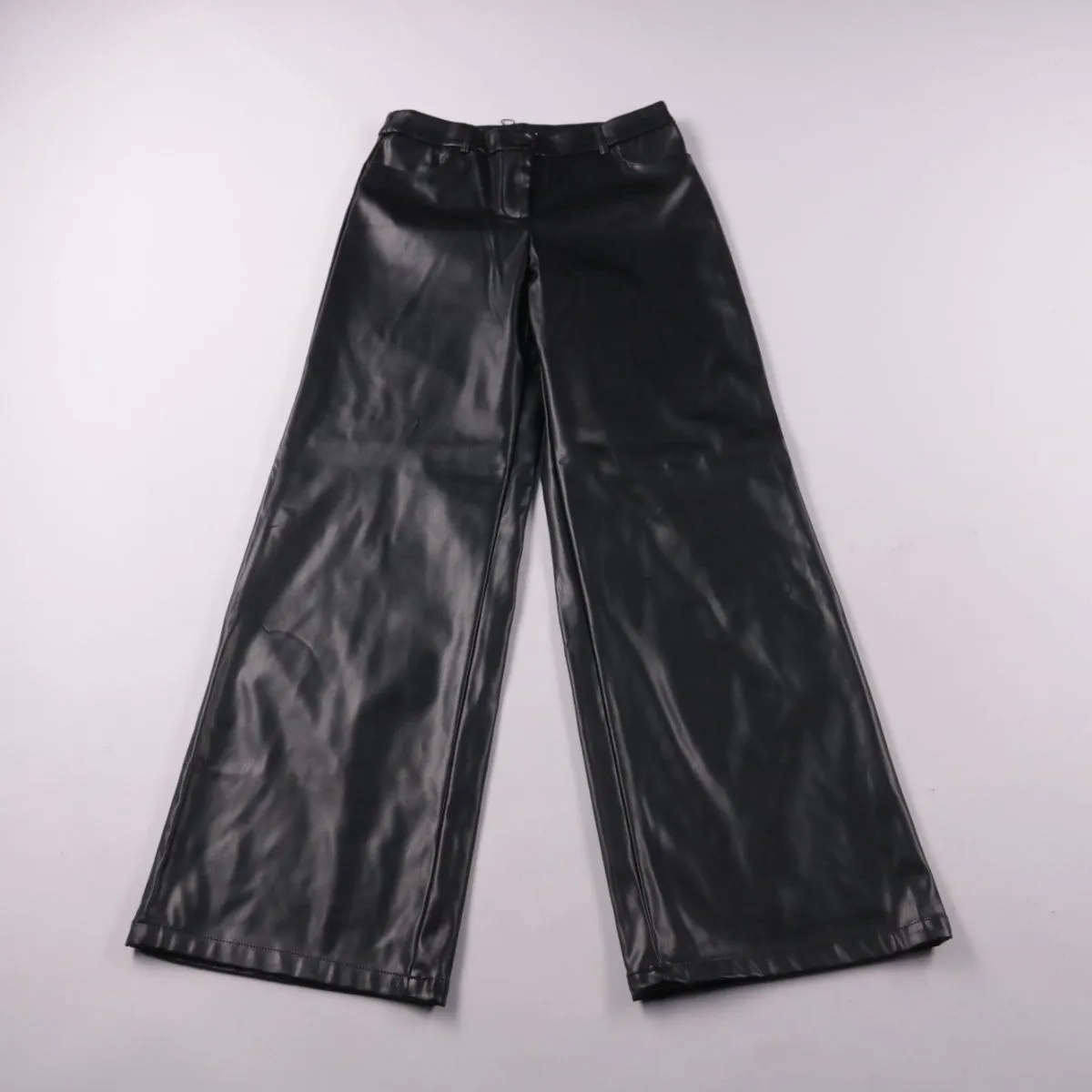 Женские брюки PrettyLittleThing из экокожи чёрного цвета, прямого кроя. Подойдут для повседневных образов и вечерних выходов с ботильонами или кедами. Материал легко протирать, поэтому их удобно носить в городе.