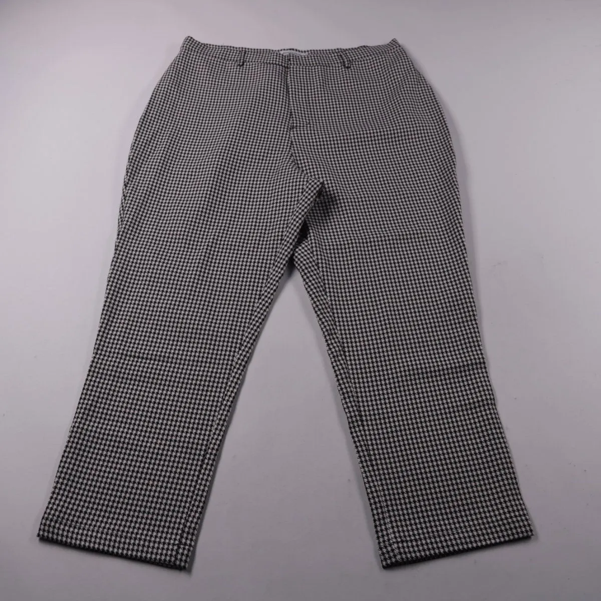 Брюки Atmos&Here в черно-белую мелкую "гусиную лапку", прямой укороченный крой. Подойдут для офиса и повседневных образов с рубашкой или свитером. Ткань с добавлением эластана немного тянется и комфортна в носке.