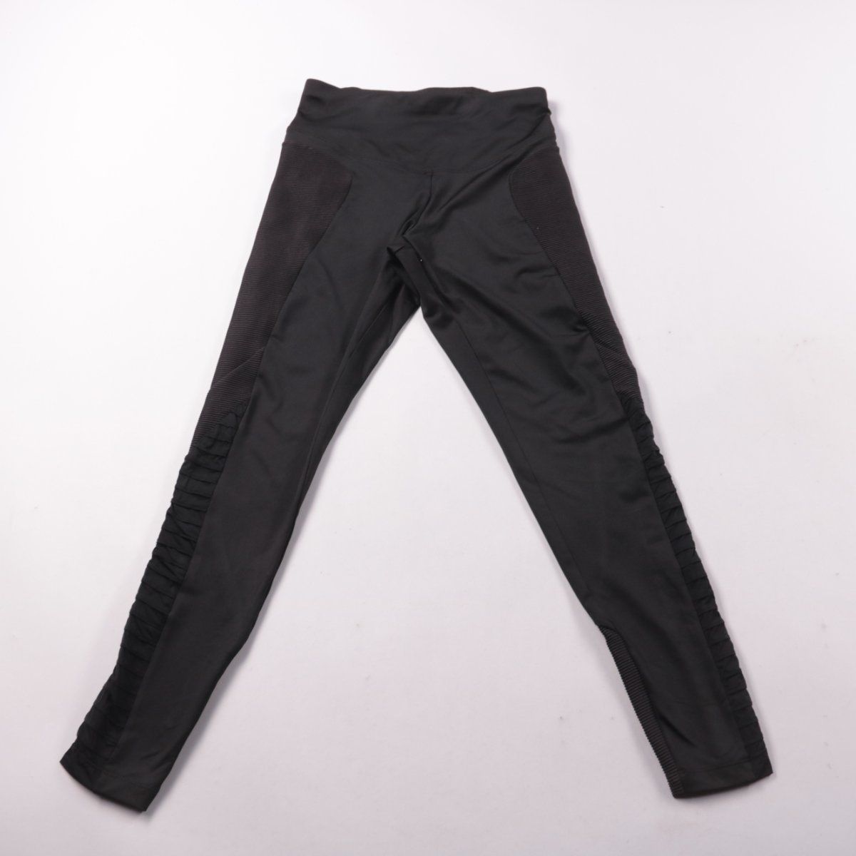 Спортивные легинсы OYSHO_SPORT чёрного цвета с высокой посадкой и фактурными вставками по бокам. Подойдут для тренировок и активных прогулок, хорошо сидят по фигуре. Эластичный материал не сковывает движения.