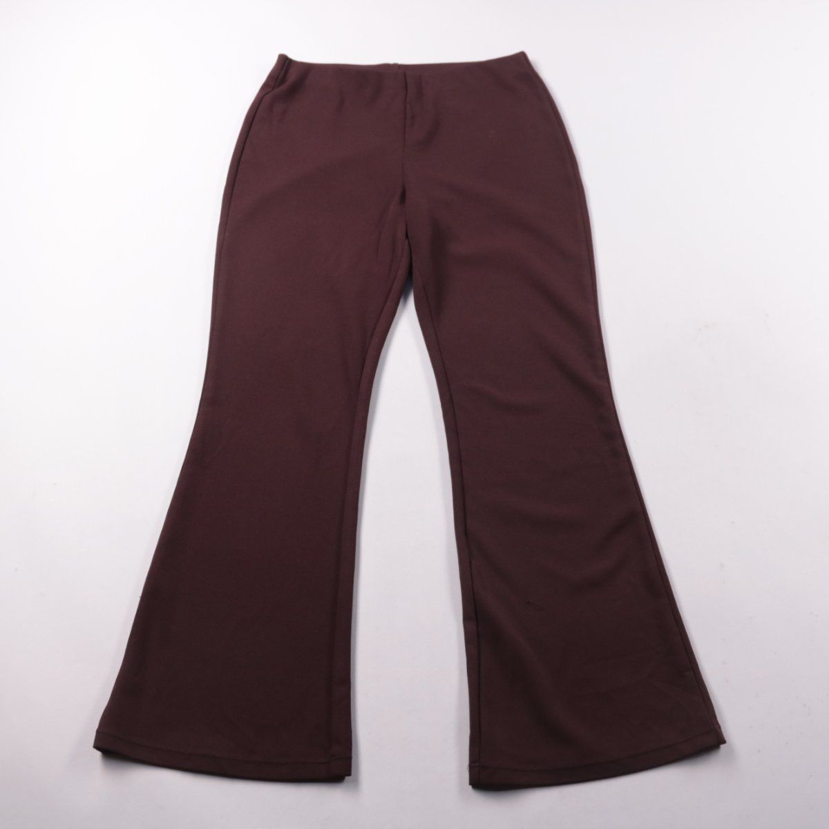 Женские брюки H&M коричневого цвета, выполнены из эластичной ткани и хорошо тянутся. Модель с расклешением от колена подойдёт для повседневных образов и офиса. Практичны в носке и почти не мнутся.