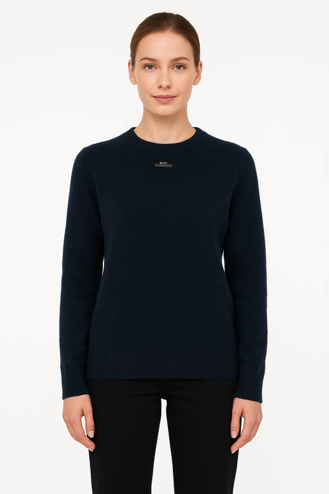Свитер Next тёмно-синего цвета с круглым вырезом и длинным рукавом. Подойдёт для повседневных образов, офиса и учёбы, хорошо сочетается с джинсами и брюками. Смесовый состав с шерстью делает его тёплым и практичным в носке.
