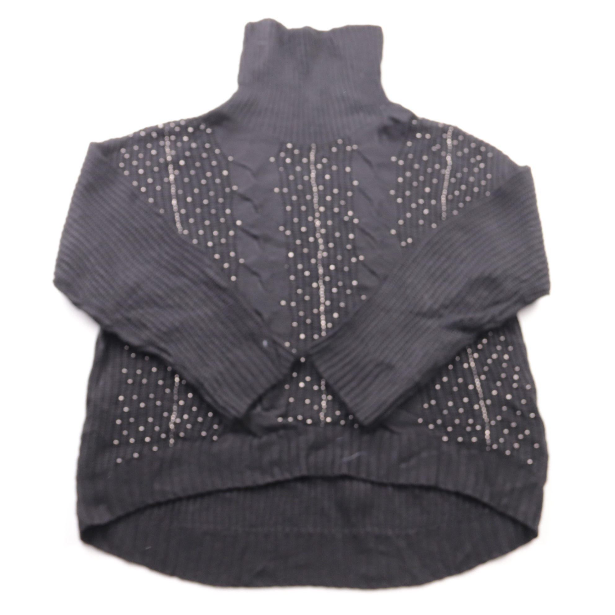 Водолазка Indigo Collection чёрного цвета с высоким воротником и декором из мелких страз на полочке. Подойдёт для прохладной погоды и для образов в офис или на вечер. Мягкий трикотаж хорошо тянется и удобно сидит под жакетом или пальто.