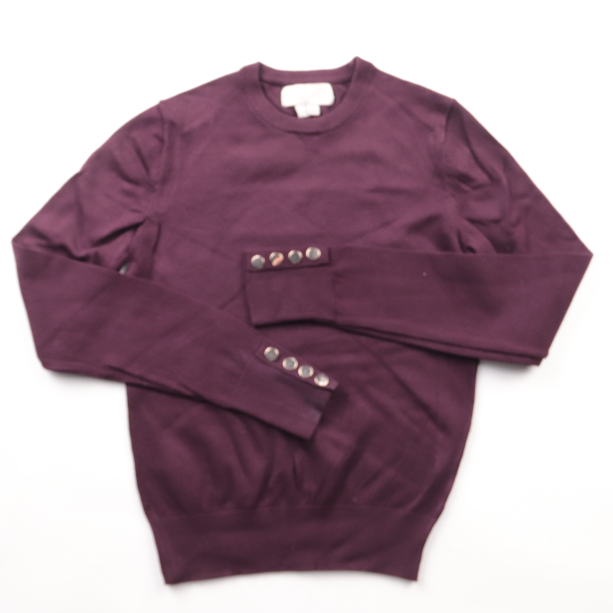 Джемпер Coast в насыщенном бордовом цвете с круглым вырезом и декоративными пуговицами на манжетах. Подойдёт для офиса и на каждый день, хорошо сочетается с брюками и юбками. Тонкий трикотаж комфортно сидит и легко помещается под жакет или пальто.