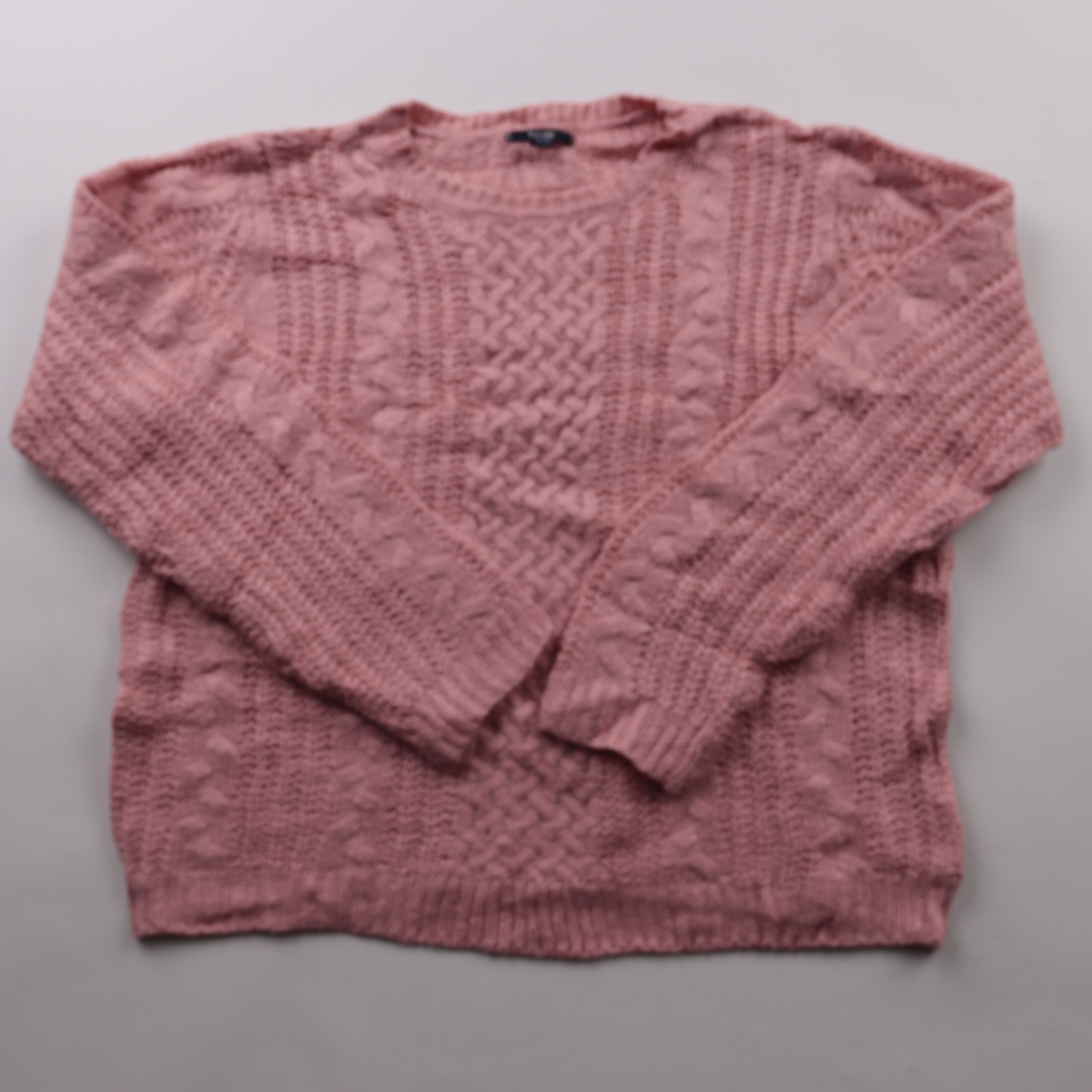 Вязаный свитер Kiabi нежно-розового цвета с фактурным узором «косы» и круглым вырезом. Подойдёт для повседневных образов в прохладную погоду, хорошо смотрится с джинсами и юбками. Плотная вязка помогает сохранять тепло и комфорт.
